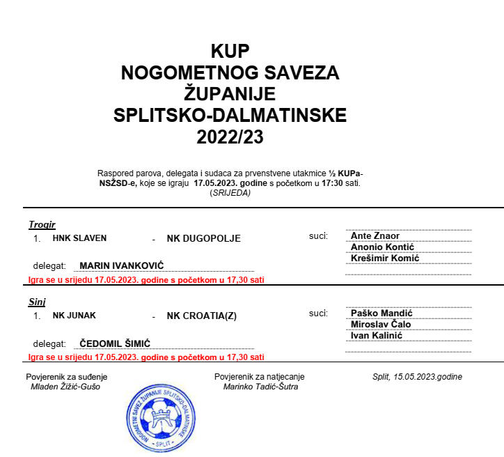 Raspored parova, delegata i sudaca za 1/2F kupa