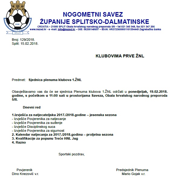 PLENUM KLUBOVA PRVE ŽNL