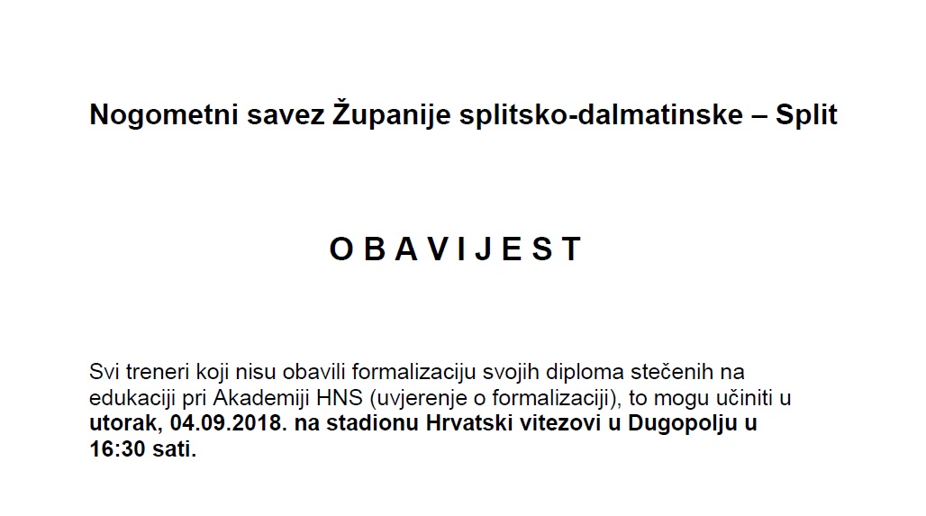 Obavijest za trenere
