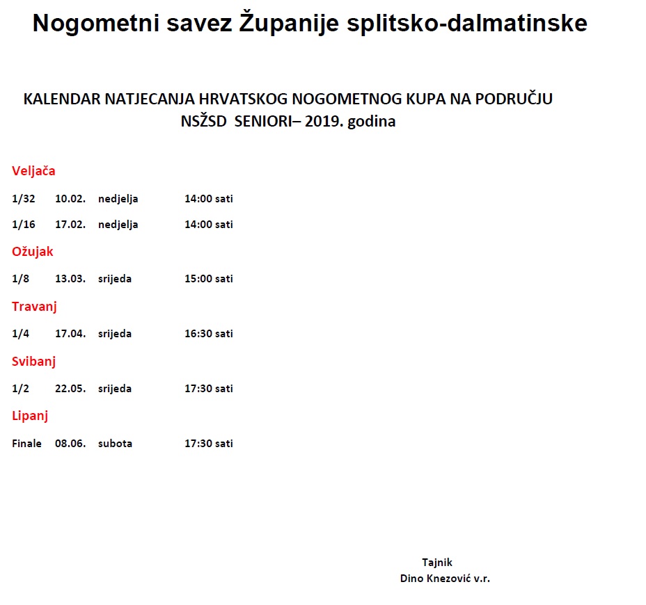 Kalendar hrvatskog nogometnog kupa za seniore na području NSŽSD