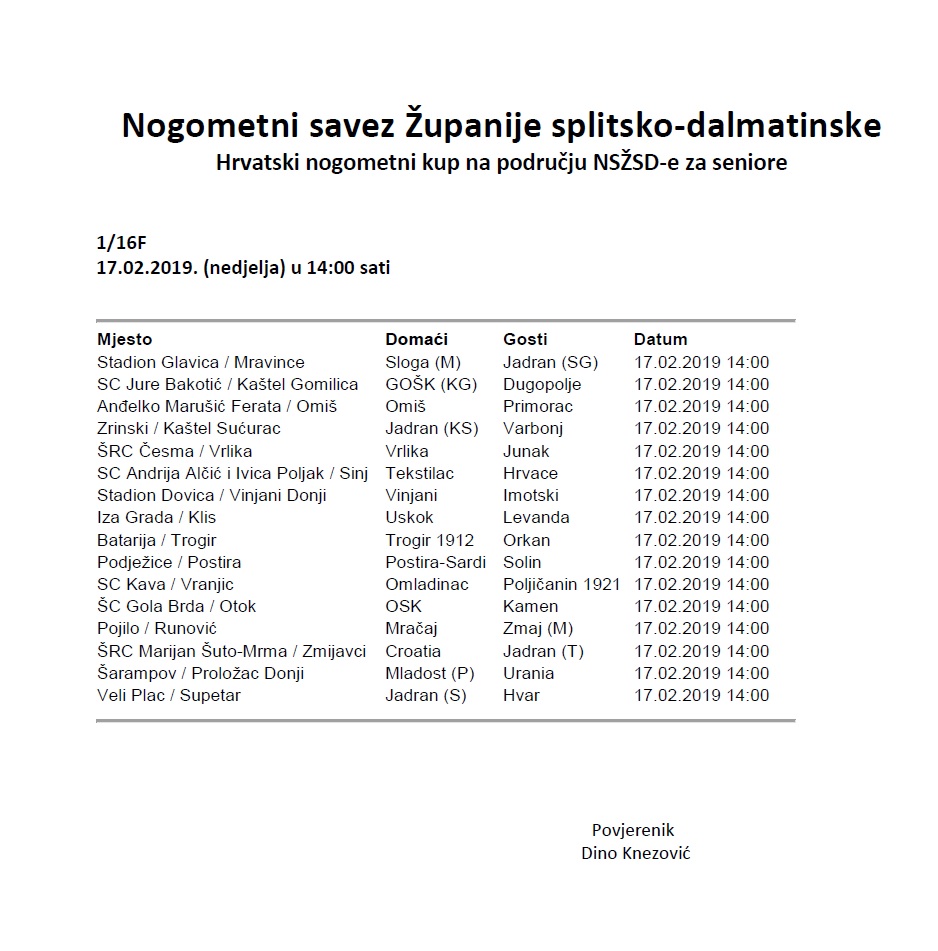 Parovi 1. kola Kupa NSŽSD