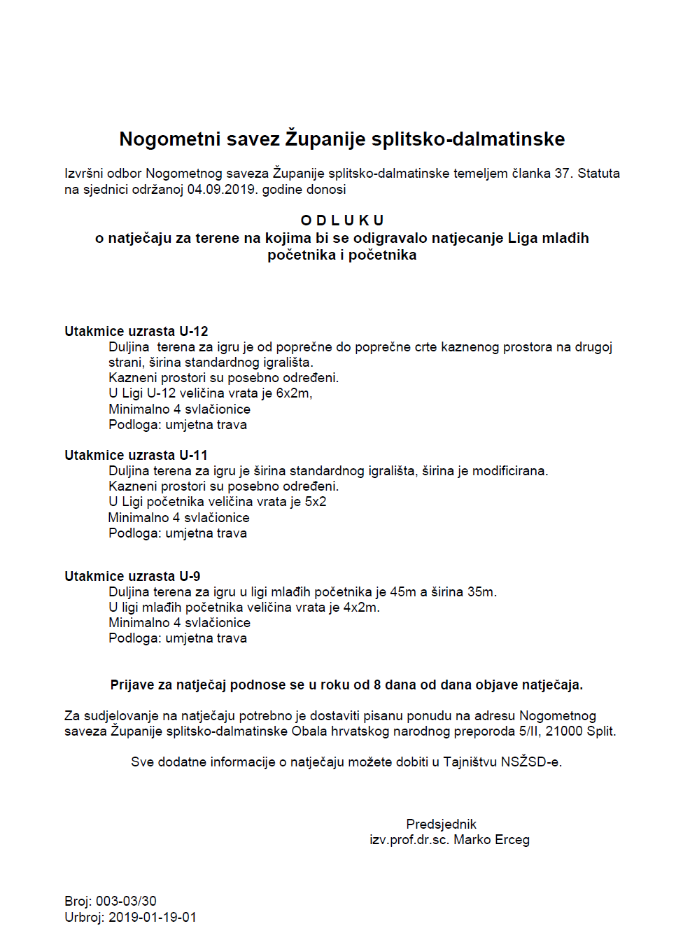 NATJEČAJ ZA TERENE NA KOJIMA BI SE ODIGRAVALO NATJECANJE LIGA POČETNIKA I MLAĐIH POČETNIKA