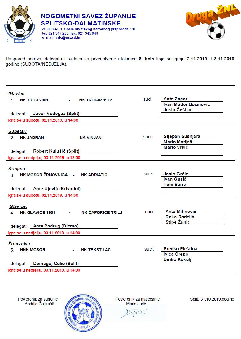 2. ŽNL (8.KOLO) Preuzmite raspored u pdf formatu