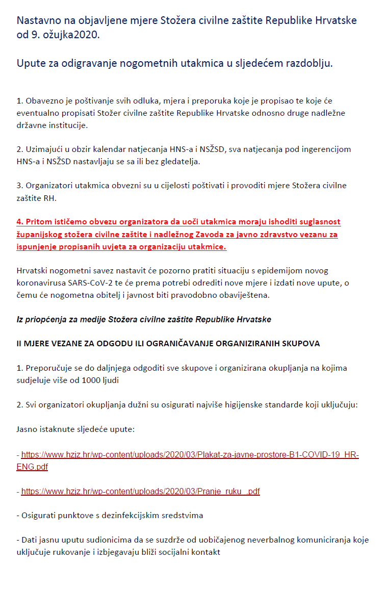 Upute za odigravanje nogometnih utakmica u sljedećem razdoblju