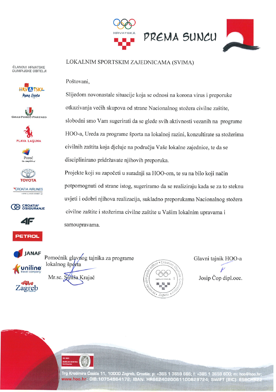 OBAVIJEST HOO-a U SVEZI PROGRAMA LOKALNOG SPORTA