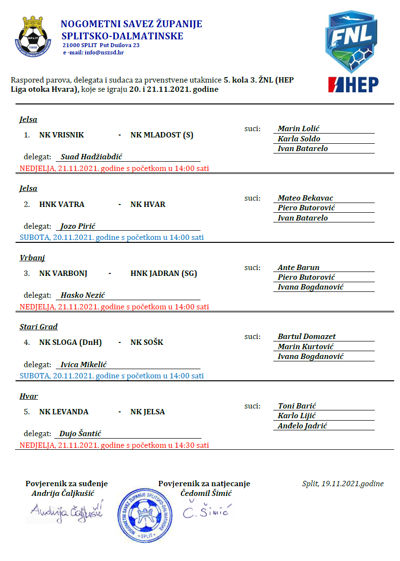3. ŽNL (5. KOLO-ZAOSTALE UTAKMICE) Preuzmite raspored u pdf formatu