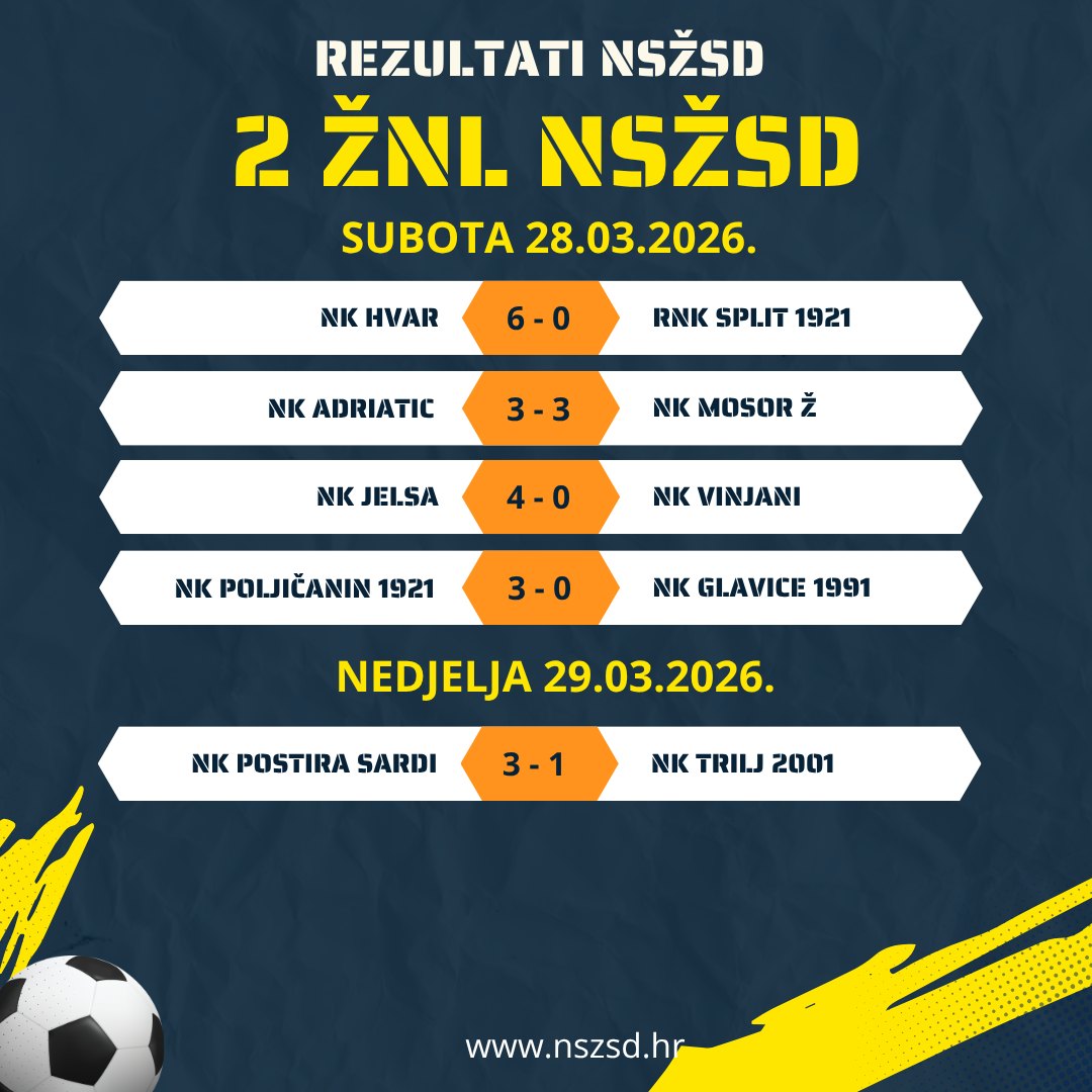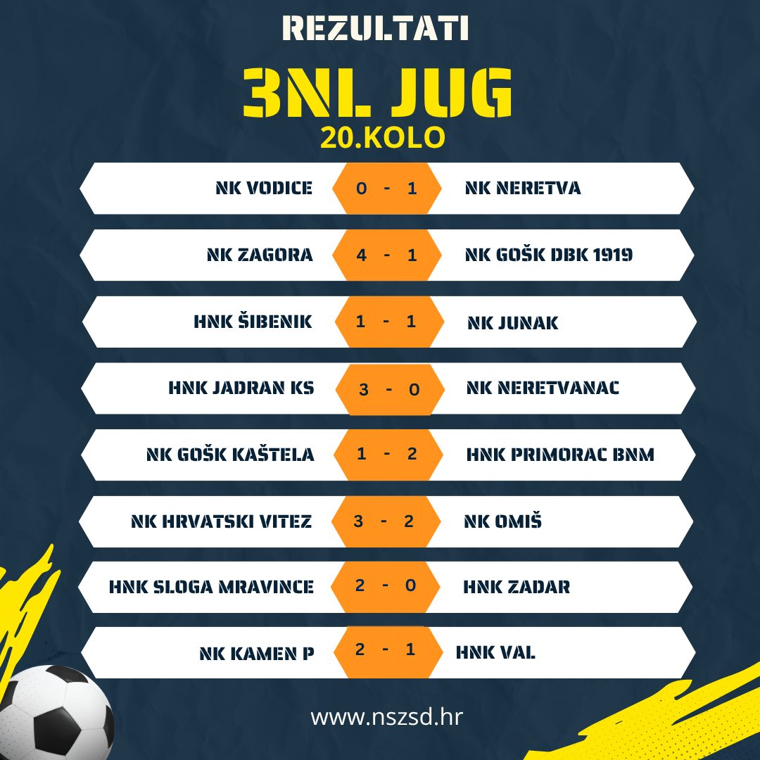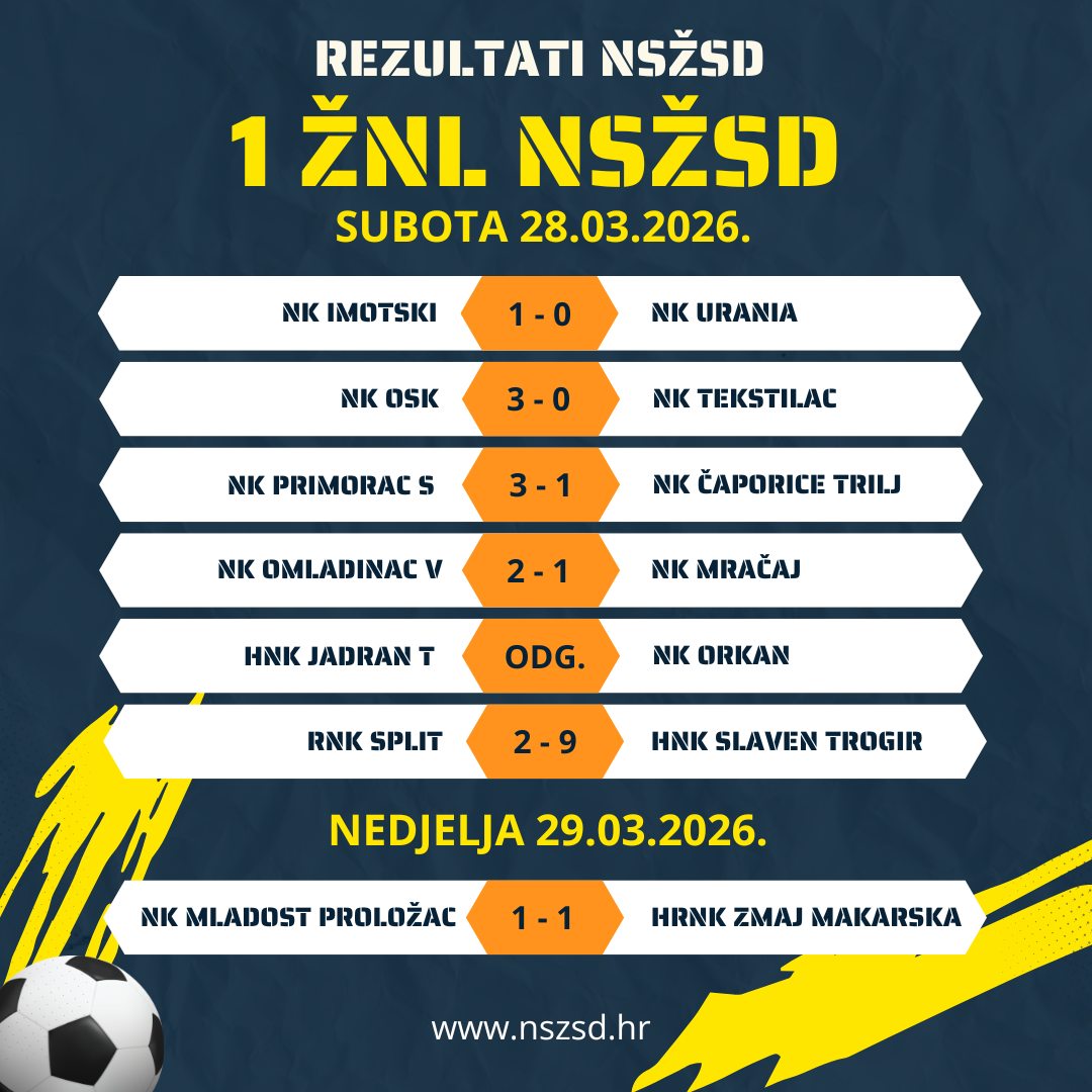 Rezultati utakmica 1. i 2. ŽNL