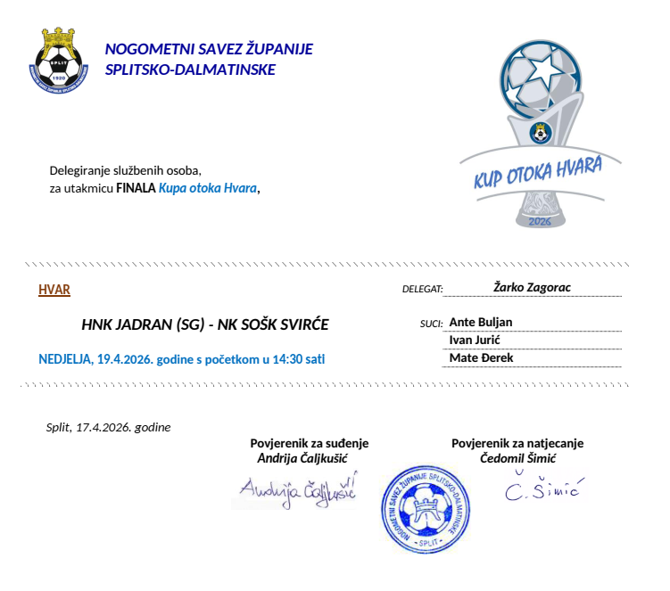 Finale Kupa otoka Hvara – Preuzmite raspored u pdf formatu
