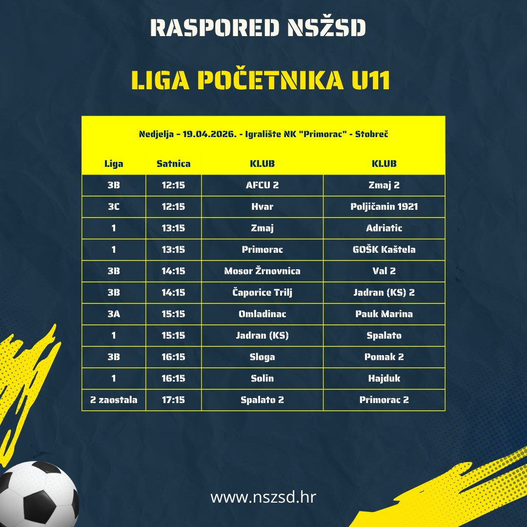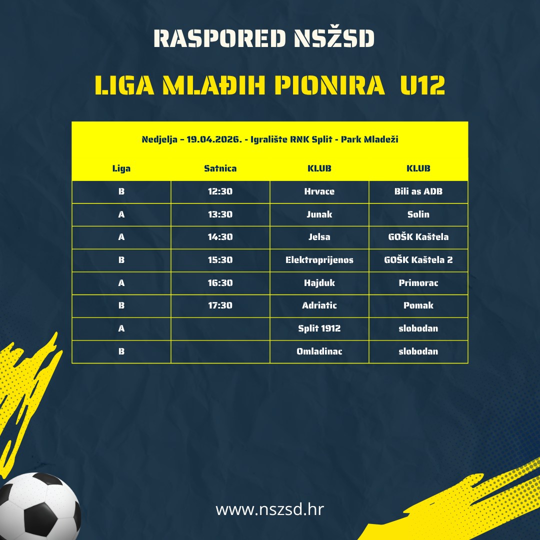 Raspored utakmica mlađih kategorija